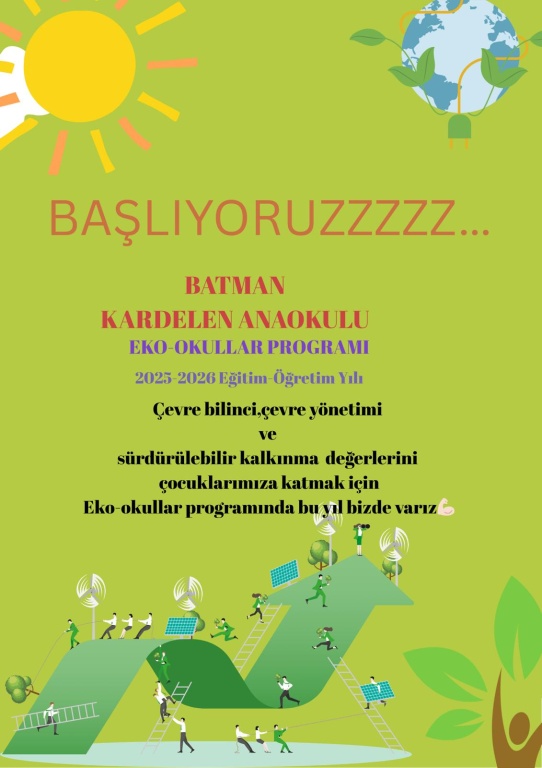Çevre bilinci,çevre yönetimi ve sürdürülebilinir kalkınma eğitimi vermek için uygulanan Eko-okullar programına KARDELEN anaokulu olarak başlıyoruz.